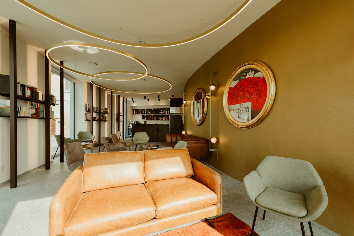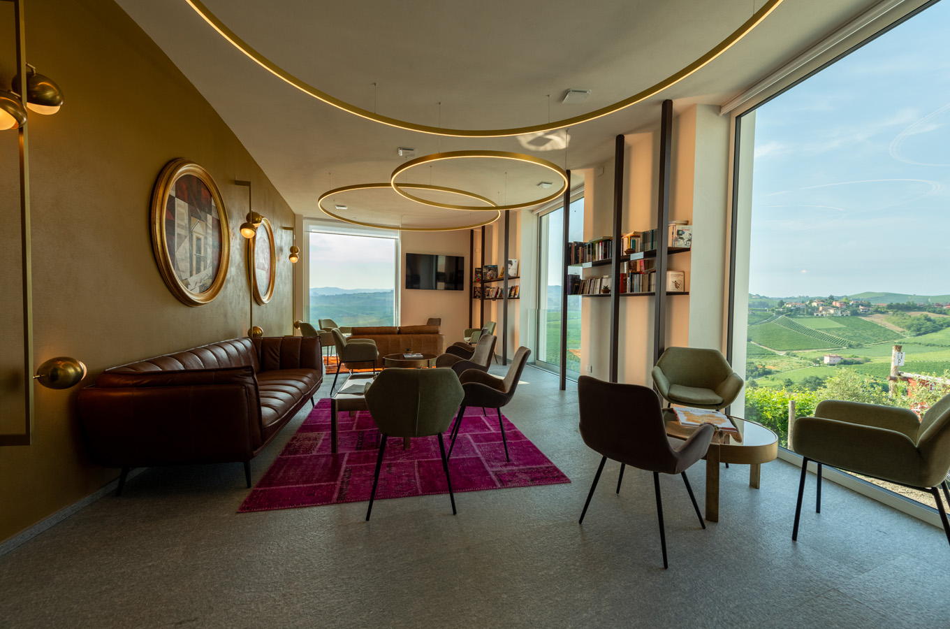 Le pareti del Palás raccontano i più emblematici cru del Barolo attraverso le opere di Giancarlo Ferraris, pittore da sempre legato a Michele Chiarlo, creatore delle sue più celebri etichette.