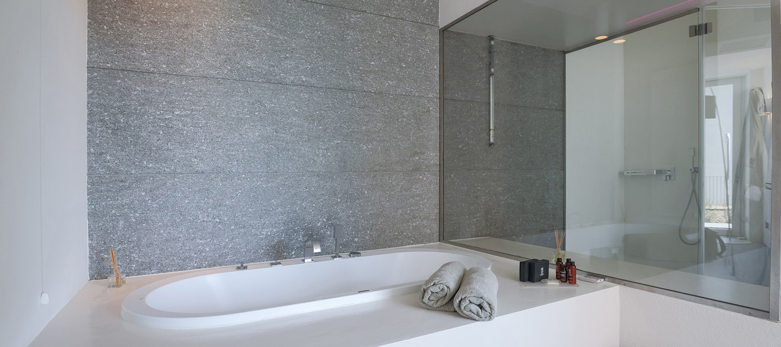 • In-room private wellness area with steam bath, rain shower (6 meters) and Jacuzzi, including chromo therapy projections on the walls