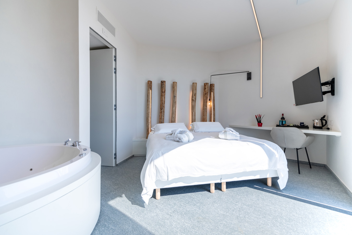 Cannubi Riserva provides an ideal haven for those who admire sleek design and the natural, refined elements that make this suite extraordinary. With its direct vistas of the stunning Barolo valley and its vineyards, coupled with an outdoor terrace beside the entrance, guests can relish an intimate connection with the surrounding nature.
