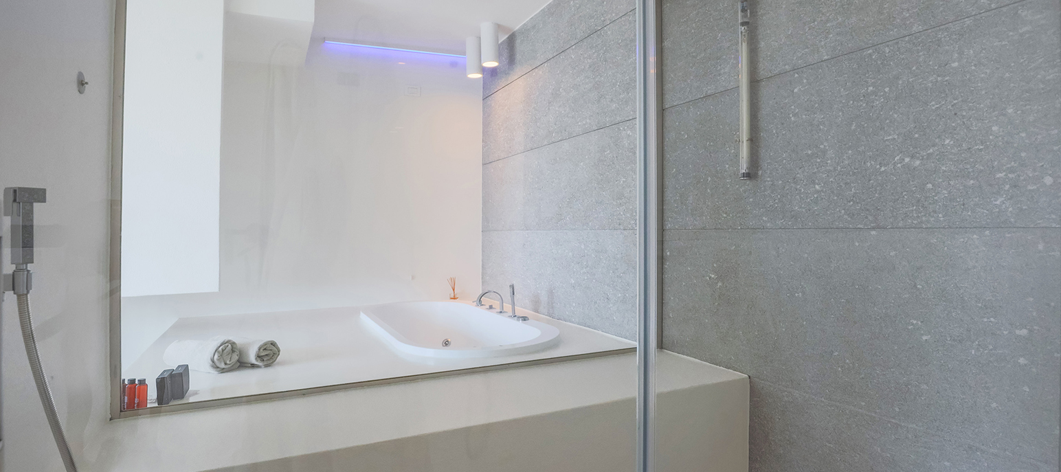 • In-room private wellness area with steam bath, rain shower (6 meters) and Jacuzzi, including chromo therapy projections on the walls